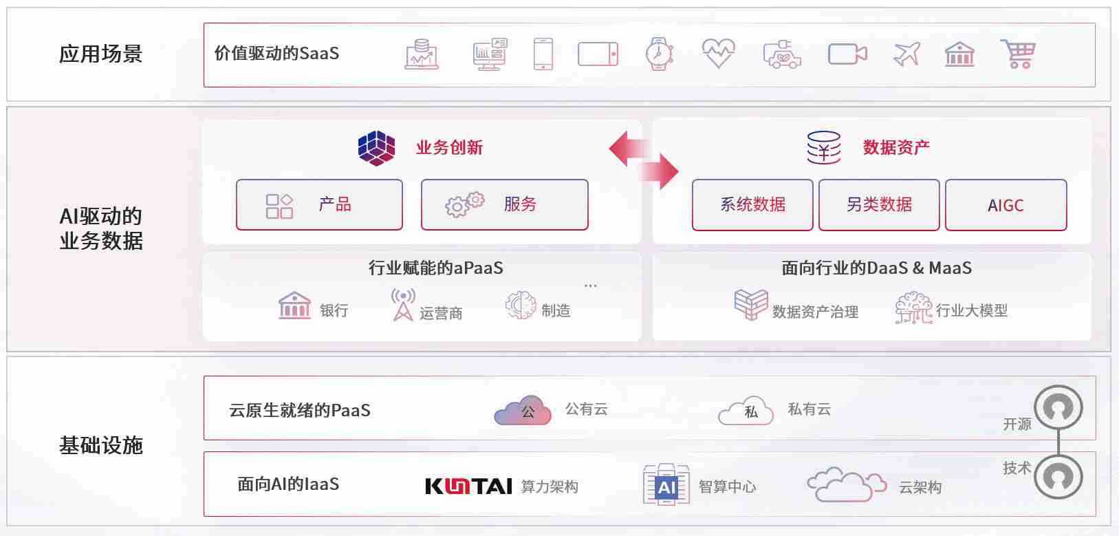 数字时代,,,,围绕企业数字化转型的关键要素,,,,NO钱包数码开创性的提出数云融合战略和技术体系框架,,,,着力在云原生、、数字原生、、AI原生和信创产业上架构产品和服务能力,,,,为处在不同数字化转型阶段的快消零售、、汽车、、金融、、医疗、、、政企、、、、教育、、、、运营商等行业客户提供泛在的敏捷IT能力和融合的数据驱动能力,,,,构建跨界融合创新的数字业务场景和新业务模式,,助力企业级客户建立面向未来的核心能力和竞争优势,,,全面推动社会的数字化、、智能化转型升级。。。。